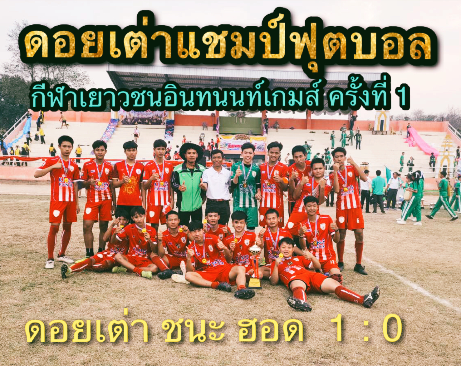 “ดอยเต่าคว้าแชมป์สมัยแรกอินทนนท์เกมส์ ” ดอยเต่าวิทยาคมสร้างประวัติศาสตร์เป็นแชมป์ ฟุตบอลสมัยแรก หลังจัดทัพหนักเฉือนทีมฮอดพิทยาคมเจ้าภาพไปหวุดหวิด 1 ประตู ต่อ 0 ได้แชมป์ปีนี้ และรับถ้วยรางวัลชนะเลิศจาก นายก อบจ.เชียงใหม่ไปครอง ในศึกฟุตบอลเยาวชนอินทนนท์เกม ครั้งที่1 วันจันทร์ที่ 24 ก.พ. 63 ที่ผ่านมา โดยมีโรงเรียนแม่แจ่ม ,จอมทอง ,อมกอย ,แม่ตื่น และฮอดพิทยาคม ส่งทีมฟุตบอล เข้าร่วมแข่งขัน
