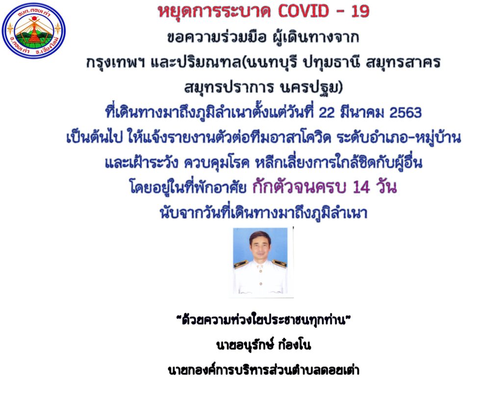 อบต.ดอยเต่ารพ.ดอยเต่า แจ้งประกาศป้องกันโควิด19