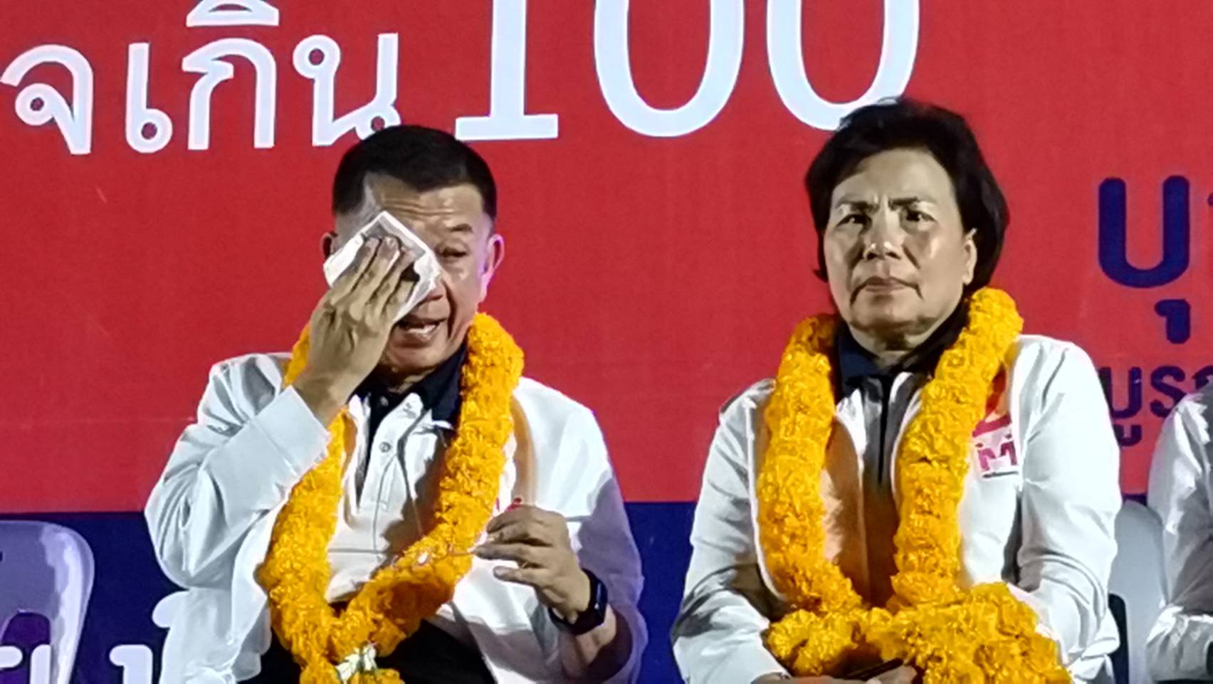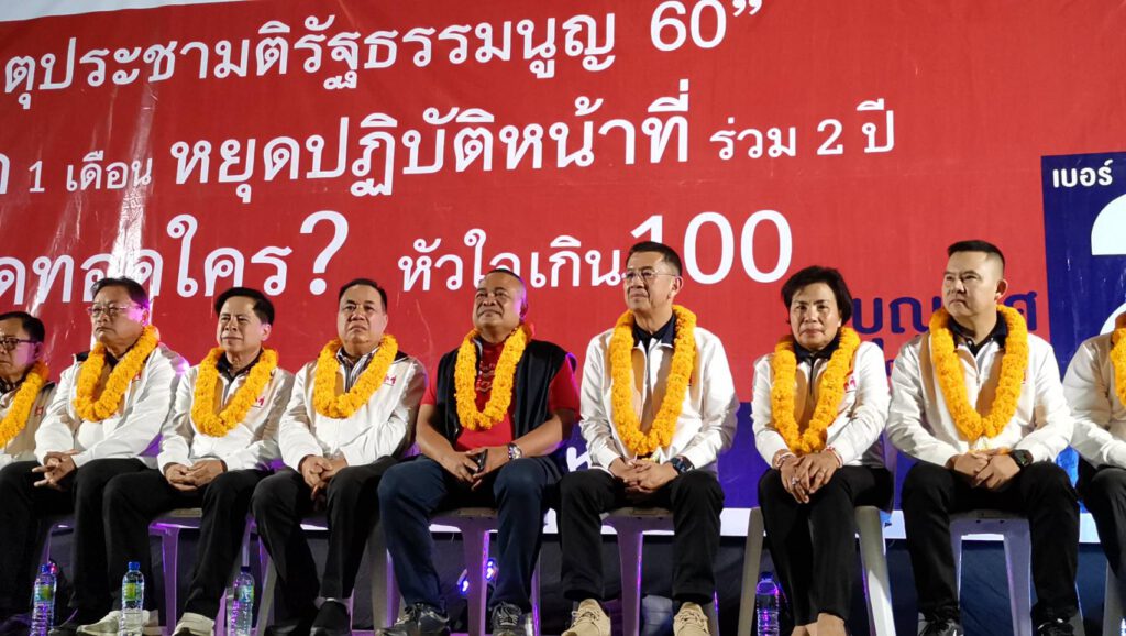 นายบุญเลิศ บูรณุปกรณ์ ขึ้นกล่าวนโยบายต่างๆ ที่พร้อมสานงานต่อทันทีทุกนโยบาย ช่วงสุดท้าย นายบุญเลิศ ถึงกับหลั่งน้ำตา “ลูกผู้ชาย” ที่ถูกกระทำและรู้สึกอัดอั้นที่ ตนเองรู้สึกทำผิดที่มาลงสมัครรับเลือกตั้งในครั้งนี้ว่า ถ้านายสั่งมาว่า “บุญเลิศ” อย่าลงน่ะ ผมก็จะไม่ลงโดยเด็ดขาดซึ่งมันทำให้ผมรู้สึกอืดอัดใจมาโดยตลอด