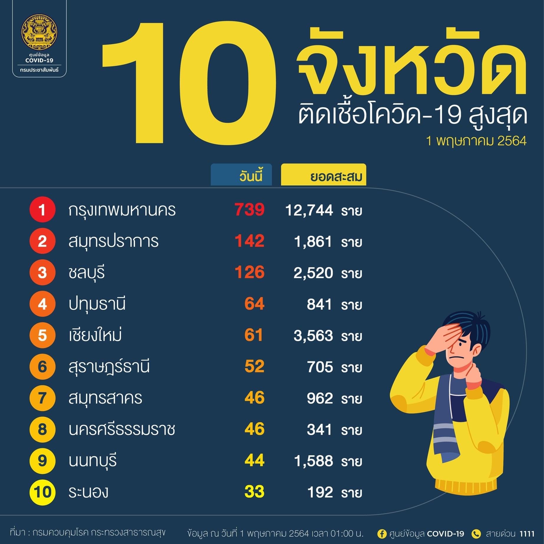 กรมควบคุมโรค กระทรวงสาธารณสุข ได้แจ้ง 10 อันดับจังหวัดที่มีจำนวนผู้ติดเชื้อโควิด 19 ในประเทศรายใหม่สูงสุด เชียงใหม่อันดับ5 ผู้ติดเชื้อลดลง