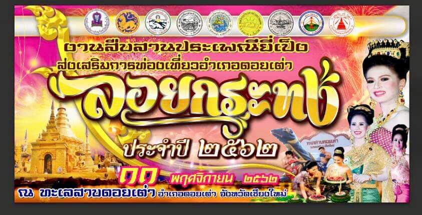 สำหรับอำเภอดอยเต่า บ้านเฮาจัดวันเดียวคืน วันจันทร์ที่ 11 พฤศจิกายน 2562 ณ ลานทะเลสาบดอยเต่า กิจกรรมในงานประกอบด้วยการประกวดกระทงใหญ่พร้อมขบวนแห่ทั้ง 6 ตำบล การประกวดสาวงามนางนพมาศ การประกวดกระทงเล็ก การประกวดร้องเพลงพ่อบ้านแม่บ้าน การแข่งขันชกมวย และการแสดงบนเวทีของเยาวชนคนดอยเต่า เชิญพี่น้องชาวดอยเต่า ร่วมสืบสานประเพณีนะครับ