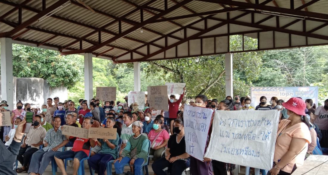 และเมื่อวันที่ 12 ก.ย. 65 ที่ผ่านมา ตัวแทนบริษัทได้นัดพบกับชาวบ้านแม่บวนเหนือที่ได้รับผลกระทบโดยตรงเพื่อชี้แจงรายละเอียดเกี่ยวกับการทำเหมืองแร่ แต่เมื่อถึงเวลานัดหมายที่ศาลากลางบ้านแม่บวนใต้ ชาวบ้านได้มารอพร้อมกันมากมายทั้งคนเฒ่าคนแก่เยาชน และเด็ก พร้อมถือป้ายประท้วงไม่เอาเหมืองแร่ก่อนการฟังคำชี้แจง ไร้เงาตัวแทนของบริษัทที่จะมาพบและอธิบายสิทธิประโยชน์ที่ชาวบ้านจะได้รับจากการทำเหมืองแร่แบไรต์ ครั้งนี้ ชาวบ้านแม่บวนใต้คนหนึ่ง (ขอสงวนนาม) กล่าวว่าชาวบ้านได้คุยกันแล้วหมดทุกคนไม่เห็นด้วยกับการที่บริษัทจะมาเปิดเหมืองแร่อีดครั้ง เพราะเราเคยได้รับผลกระทบด้านสิ่งแวดล้อมและสุขภาพมาแล้วจากการทำเหมืองแร่แห่งนี้ในอดีตที่ผ่านมา