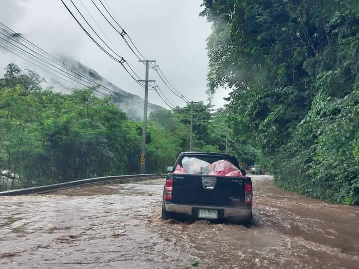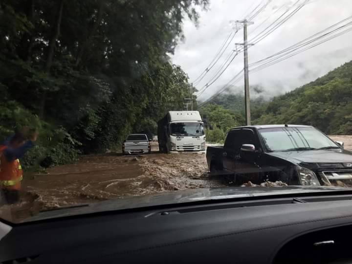 เช้าวันที่ 1 ตุลาคม 2565 รับแจ้งจากตำรวจทางหลวงฮอดว่าถนนหมายเลข 108 ฮอด-แม่สะเรียงบริเวณกิโลเมตรที่ 9-11 น้ำได้ท่วมขังถนนและมีดินสไลด์รถทุกชนิดไม่สามารถผ่านไปได้ถ้ารีบด่วนให้ไปใช้เส้นทางดอยอินทนนท์-แม่แจ่ม-แม่สะเรียง ค่ะ /ขอบคุณภาพ จาก Nuning Kartoon