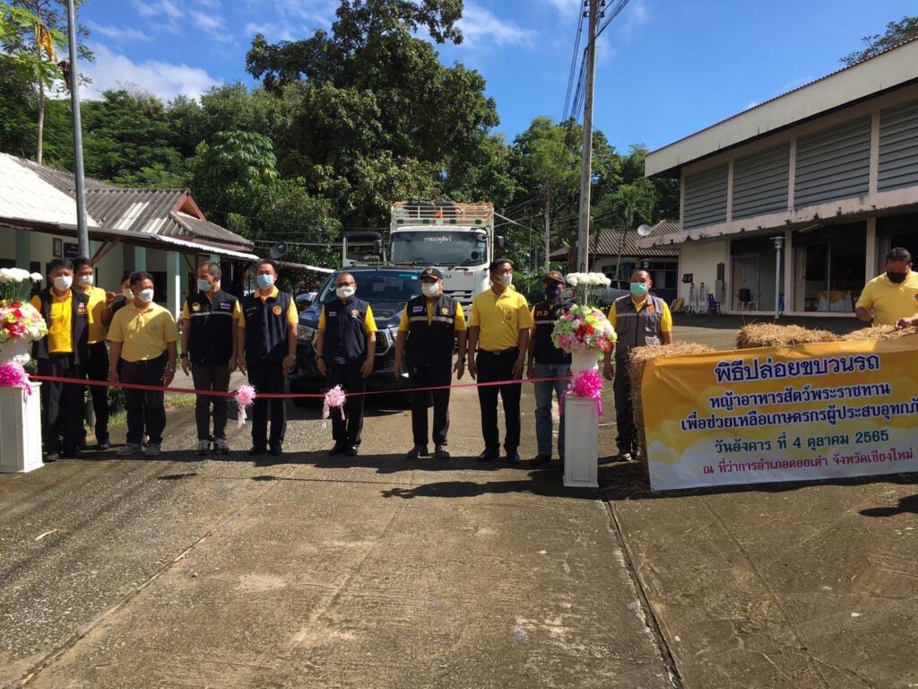 นายสัตวแพทย์อนุสรณ์ หอมขจร ปศุสัตว์จังหวัดเชียงใหม่ เป็นประธานตัดริบบิ้นปล่อยขบวนรถหญ้าอาหารสัตว์ พระราชทาน และรถหน่วยสัตวแพทย์เคลื่อนที่ เพื่อช่วยเหลือเกษตรกรผู้ประสบอุทกภัยและดูแลสุขภาพสัตว์เลี้ยง ในพื้นที่อำเภอดอยเต่าจังหวัดเชียงใหม่ พร้อมกับส่วนกลาง ศูนย์ราชการกรมปศุสัตว์ จังหวัดปทุมธานี โดยมี ศูนย์วิจัยและพัฒนาอาหารสัตว์ลำปาง สำนักงานปศุสัตว์เขต 5 สำนักงานปศุสัตว์อำเภอดอยเต่าและสำนักงานปศุสัตว์อำเภอกลุ่มโซนสายใต้ เข้าร่วมในพิธี
