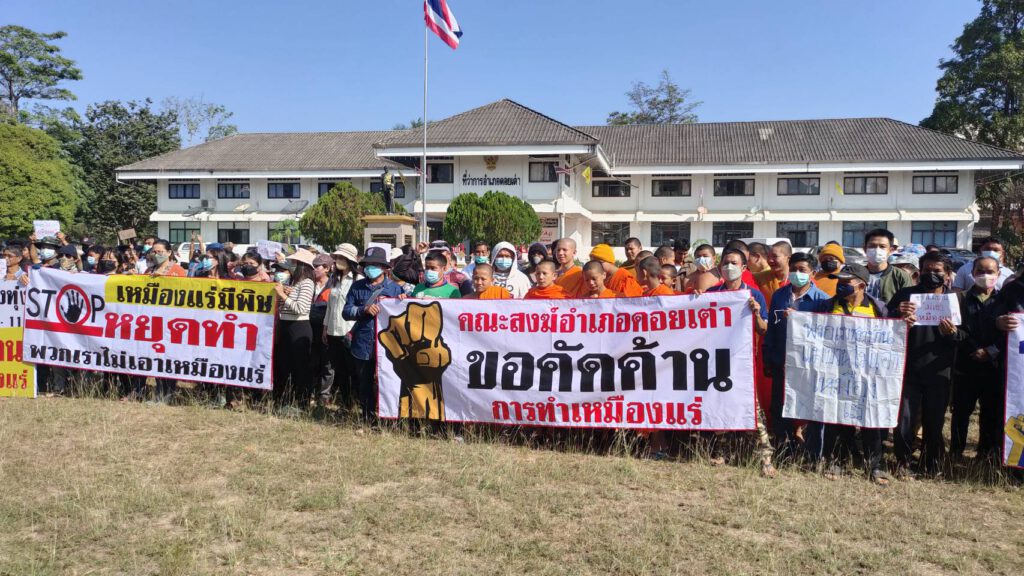 เช้าวันที่ 22 ธ.ค.2565 นายเสงี่ยม ใจรินทร์ กำนันตำบลมืดกา ประธานชมรมกำนันผู้ใหญ่บ้าน นายทนง แดงบุญ กำนันตำบล โปงทุ่ง นายทองสุข ชัยชนะ นายกองค์การบริหารส่วนตำบลโป่งทุ่ง นายพิชิต สุทธิประภากุล ผู้ใหญ่บ้านแม่บวนเหนือ นายอนุรักษ์ ก๋องโน นายกองค์การบริหารส่วนตำบลดอยเต่า นายพิภพ จาเรือน นายกเทศมนตรีท่าเดื่อ-มืดกา นายธีรพงศ์ ดวงจันทร์ กำนันตำบลท่าเดื่อ คณะสงฆ์อำเภอดอยเต่าเด็กนักเรียนบ้านแม่บวน และชาวบ้าน ต.โปงทุ่ง อ.ดอยเต่า จ.เชียงใหม่ ได้รวมตัวกันที่สนามหน้าที่ว่าการอำเภอดอยเต่า ยื่นหนังสือต่อนายนิติปกรณ์ แสงสุวรรณ นายอำเภอดอยเต่าส่งต่อให้ผู้ว่าราชการจังหวัดเชียงใหม่ เพื่อคัดค้านและยกเลิกประทานบัตรเหมืองแร่ในพื้นที่ตำบลโป่งทุ่งอำเภอดอยเต่า โดยมีชาวบ้านมาร่วมประมาณ 200 กว่าคน ……คลิปวีดีโอ … https://youtu.be/qIoXvsApV2I