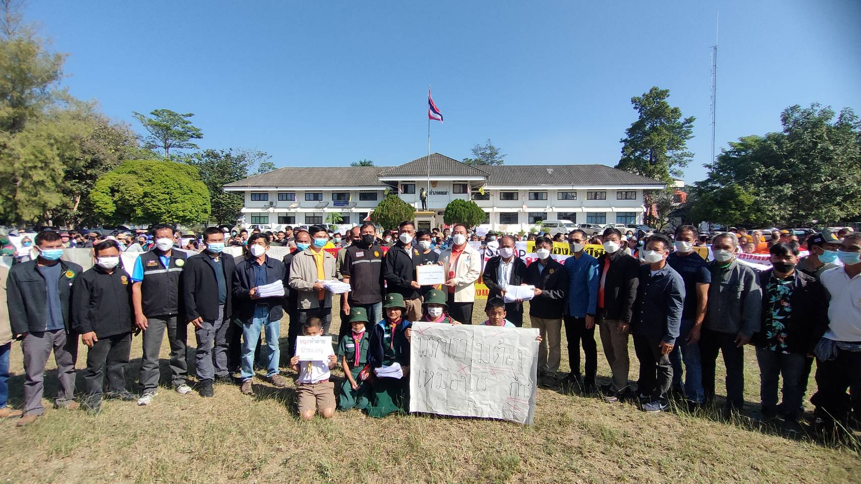 เช้าวันที่ 22 ธ.ค.2565 นายเสงี่ยม ใจรินทร์ กำนันตำบลมืดกา ประธานชมรมกำนันผู้ใหญ่บ้าน นายทนง แดงบุญ กำนันตำบล โปงทุ่ง นายทองสุข ชัยชนะ นายกองค์การบริหารส่วนตำบลโป่งทุ่ง นายพิชิต สุทธิประภากุล ผู้ใหญ่บ้านแม่บวนเหนือ นายอนุรักษ์ ก๋องโน นายกองค์การบริหารส่วนตำบลดอยเต่า นายพิภพ จาเรือน นายกเทศมนตรีท่าเดื่อ-มืดกา นายธีรพงศ์ ดวงจันทร์ กำนันตำบลท่าเดื่อ คณะสงฆ์อำเภอดอยเต่าเด็กนักเรียนบ้านแม่บวน และชาวบ้าน ต.โปงทุ่ง อ.ดอยเต่า จ.เชียงใหม่ ได้รวมตัวกันที่สนามหน้าที่ว่าการอำเภอดอยเต่า ยื่นหนังสือต่อนายนิติปกรณ์ แสงสุวรรณ นายอำเภอดอยเต่าส่งต่อให้ผู้ว่าราชการจังหวัดเชียงใหม่ เพื่อคัดค้านและยกเลิกประทานบัตรเหมืองแร่ในพื้นที่ตำบลโป่งทุ่งอำเภอดอยเต่า โดยมีชาวบ้านมาร่วมประมาณ 200 กว่าคน ……คลิปวีดีโอ … https://youtu.be/qIoXvsApV2I