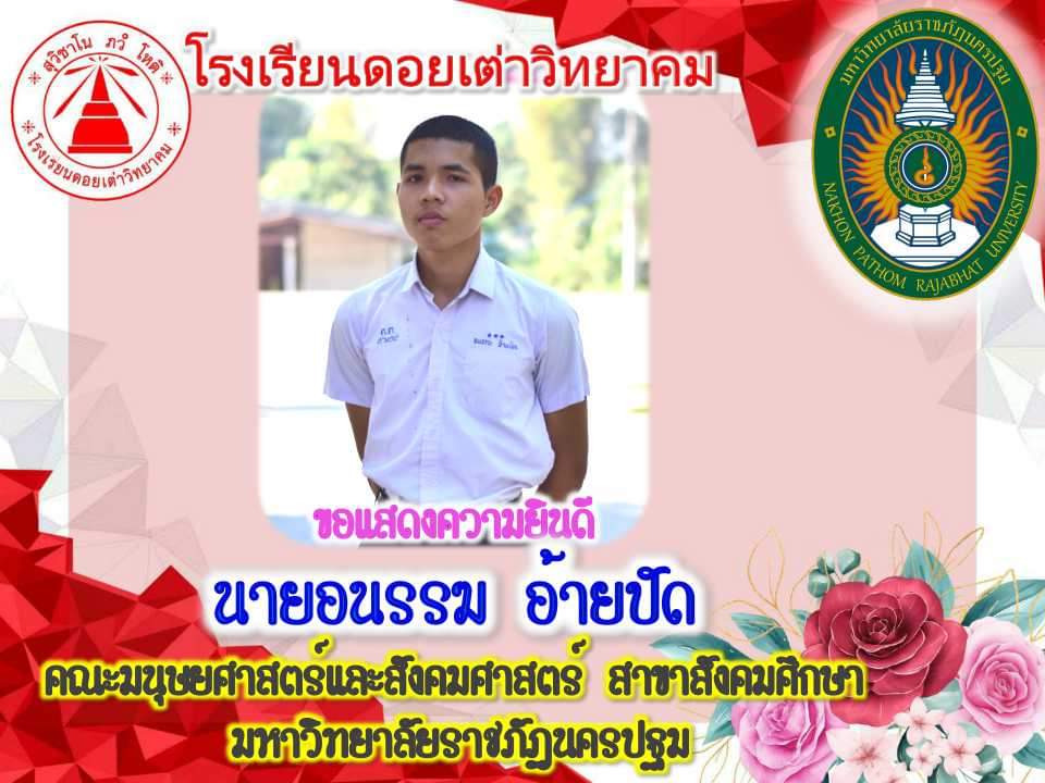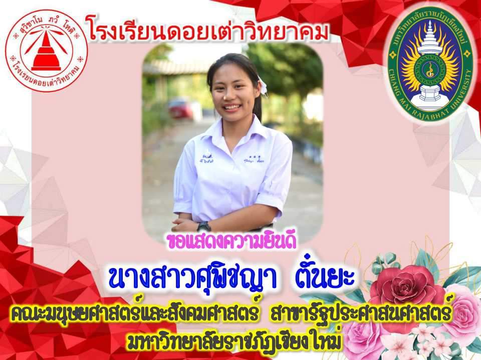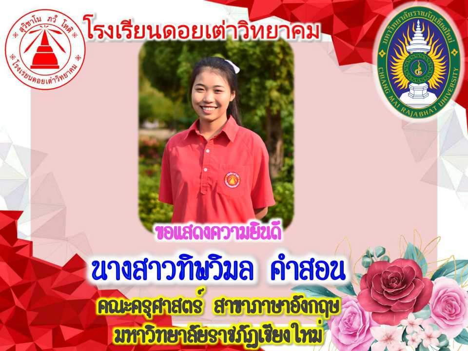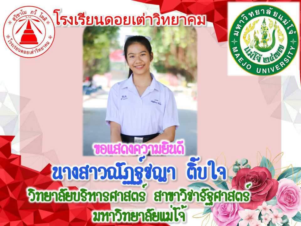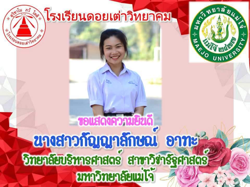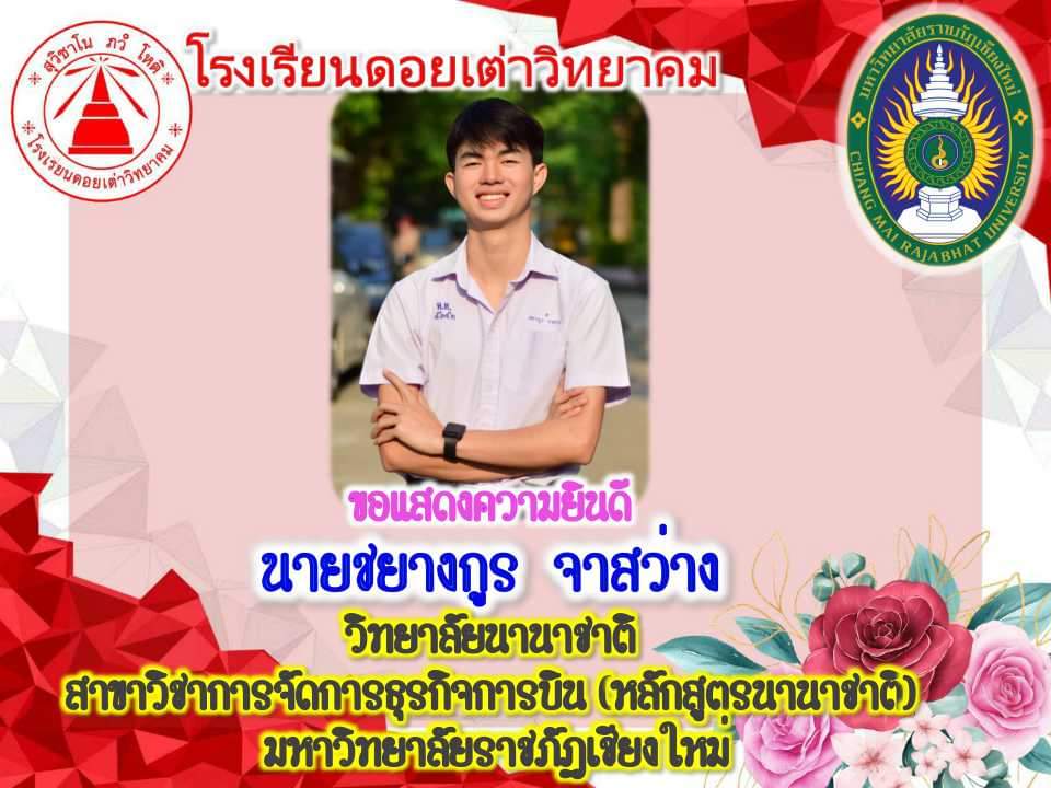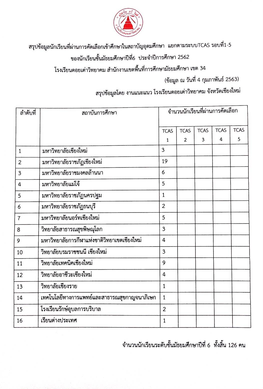 บ่ายวันที่ 7 ก.พ.63 ดร.วิทยา พัฒนเมธาดาผอ.ร.ร.ดอยเต่าวิทยาคม เผยว่า ปีนี้นักเรียนชั้นมัธยมศึกษาปีที่ 6 โรงเรียนดอยเต่าวิทยาคม ที่ผ่านการคัดเลือกและมีสิทธิ์เข้าศึกษาต่อในมหาวิทยาลัยรอบ TCAS1 ได้แก่ โครงการเรียนดี, โครงการความสามารถพิเศษ และโครงการเด็กดีมีที่เรียน รวมทั้งสิ้น จำนวน 69 คน ซึ่งต้องขอแสดงความยินดีกับเด็กและผู้ปกครองนักเรียนด้วย เด็กดอยเต่าเราเก่งและดีครับ